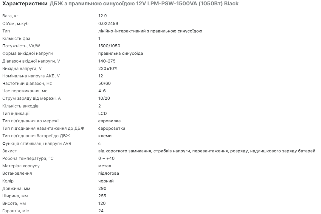 - LP 12В LPM-PSW (1.5 кВА, 1 кВт, черный цвет)