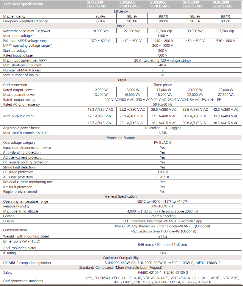 Детальнее о инверторе Huawei: серия SUN2000, модель 12KTL-M5