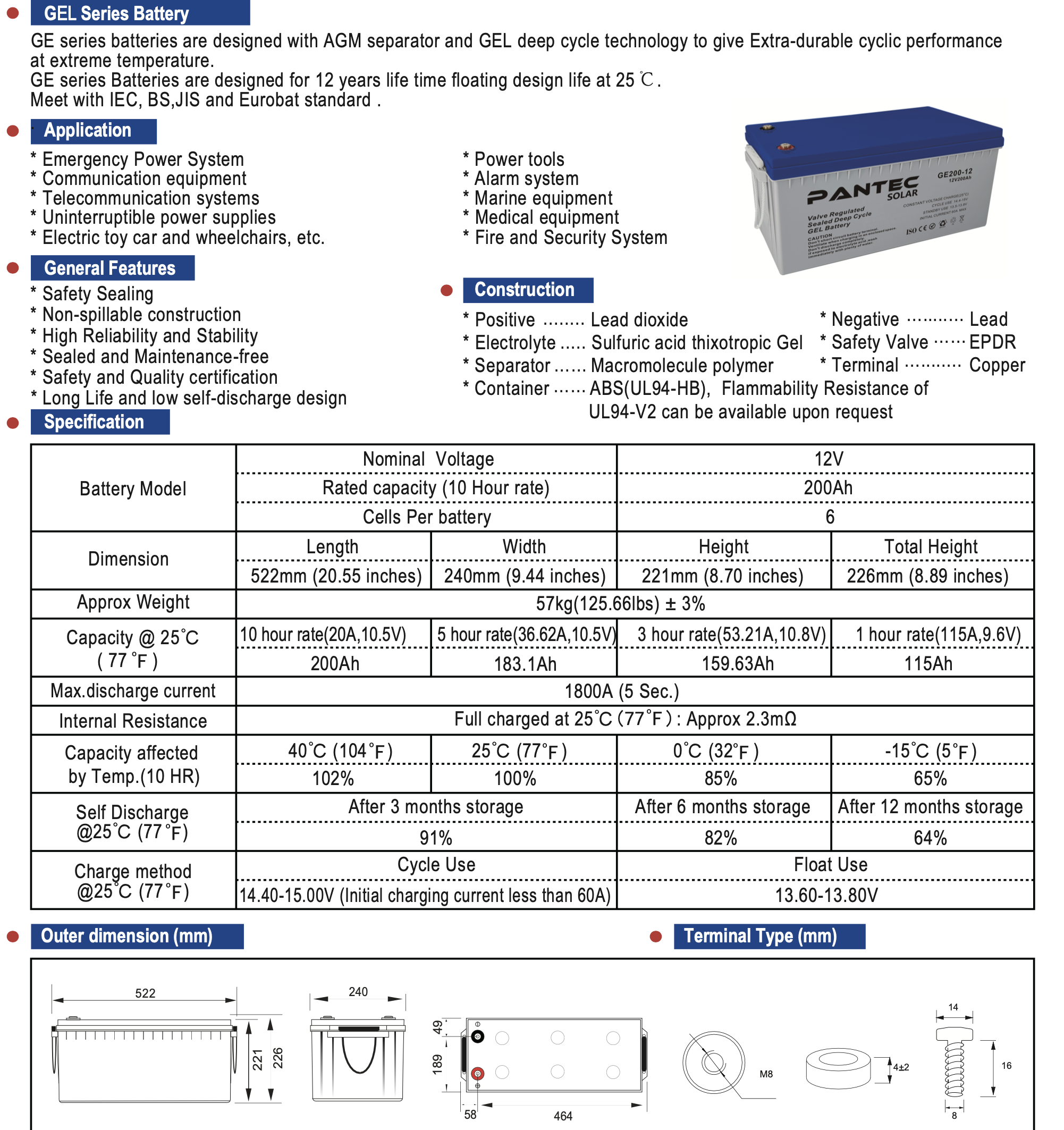 Детальнее о GE 200-12 (тип GEL, бренд PANTEC)
