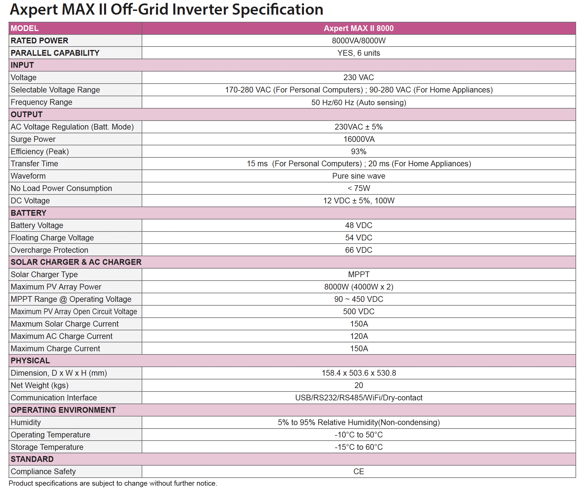 Детальнее о инверторе Voltronic: серия Axpert MAX II, версия 8K