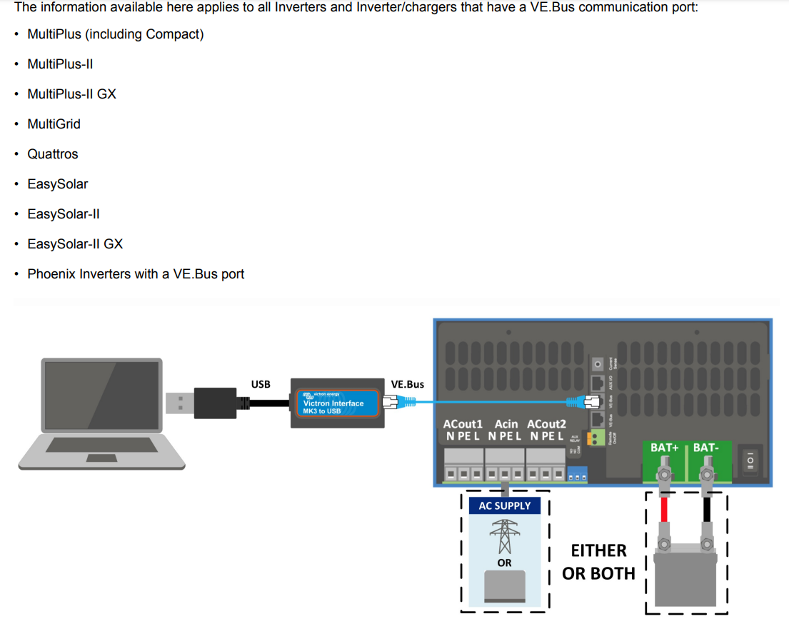 - Сумісне обладнання – продукція Victron Energy з підтримкою протоколу VE.Bus.