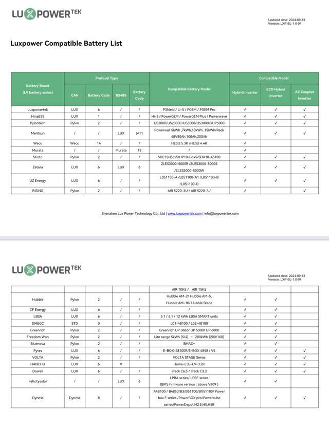 - Вхід АКБ – 48 В (51.2 В). Заряд від мережі до 60 А. Підтримка кислотних та літій залізо фосфатних АКБ Pylontech, BYD та інші. Спілкування з BMS АКБ CAN\RS485.