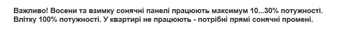 Не  потребує  акумулятора  і  контролера.  Наибільша  ефективність  при  яскравому  сонці.  Супроводжується  річною  гарантією.