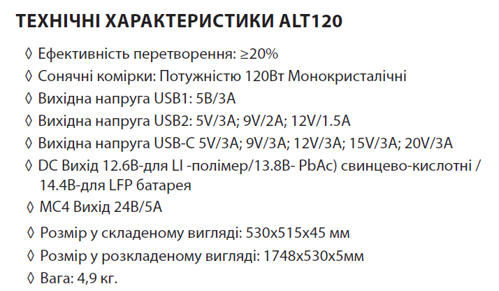 - ALT-120 - міні-станція сонячного заряду (120 Вт)