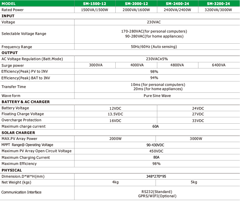 МРРТ-контролерний 3-кіловатний інвертор, який працює як із сонячною системою, генератором, мережею, так і окремо з акумулятором при відсутності інших джерел.