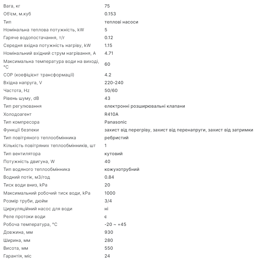 Вигідний варіант теплового насосу для двох підлог з підігрівом або інших варіантів - однофазне живлення, кожухотрубний теплообмінник, 43 дБ шумність, 5 кВт теплової потужності, споживаючи до 1.15 кВт.