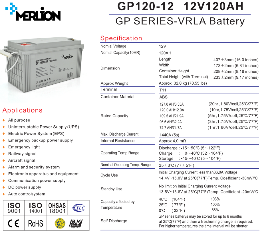 Merlion AGM GP121200M8 поєднує довговічність, високий струм віддачі та мінімальні вимоги до технічного обслуговування, що забезпечує ефективну та безпечну експлуатацію протягом усього терміну служби.