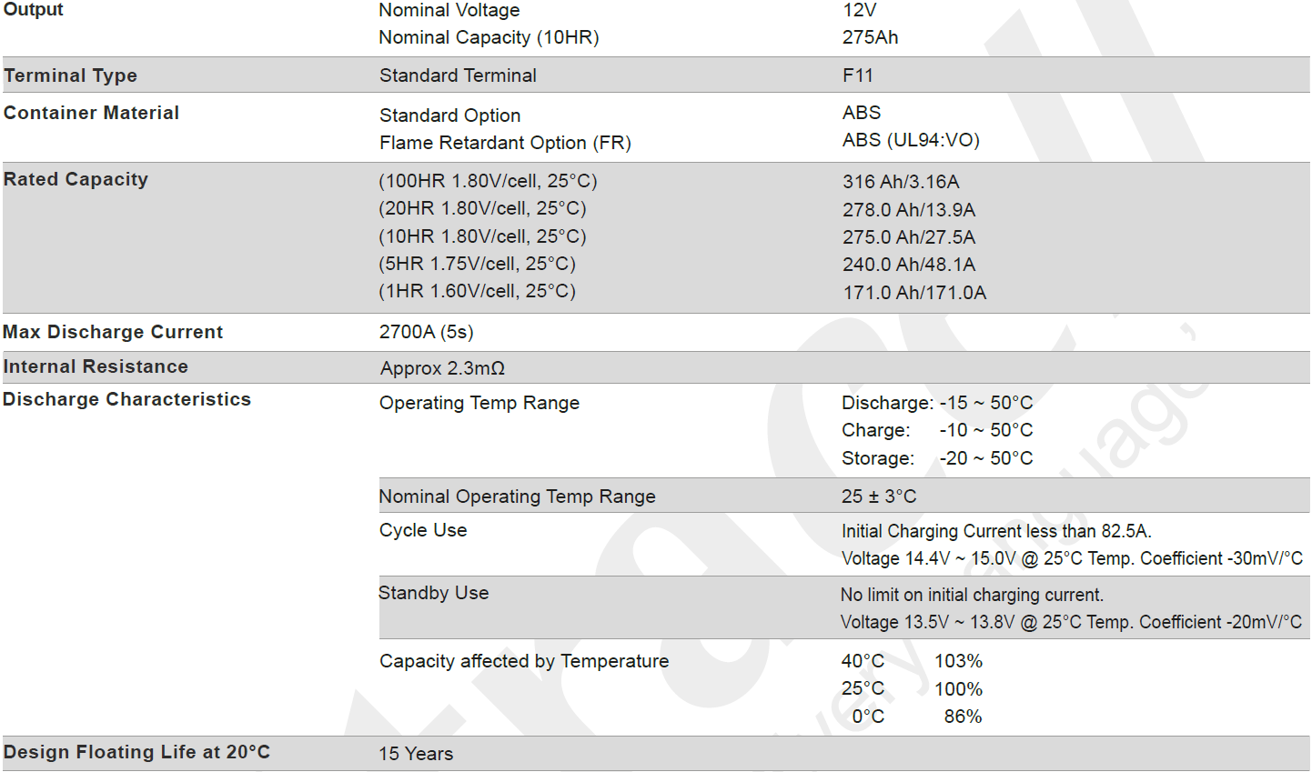 Високоємнісний (275 Аг) гелевий акумулятор 12-вольтового стандарту широкого спектру призначення, в т. ч. для побутових ДБЖ або домашніх електростанцій. Особливо ефективний в циклічному режимі.