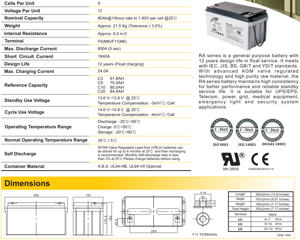 Детальніше про акумулятор серії RA - модель 12-80, бренд RITAR