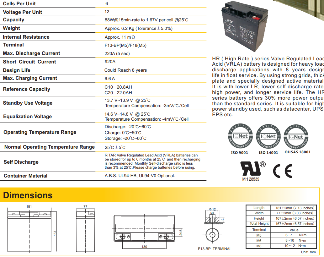 Детальніше про акумулятор RITAR: серія HR, модель 12-88W