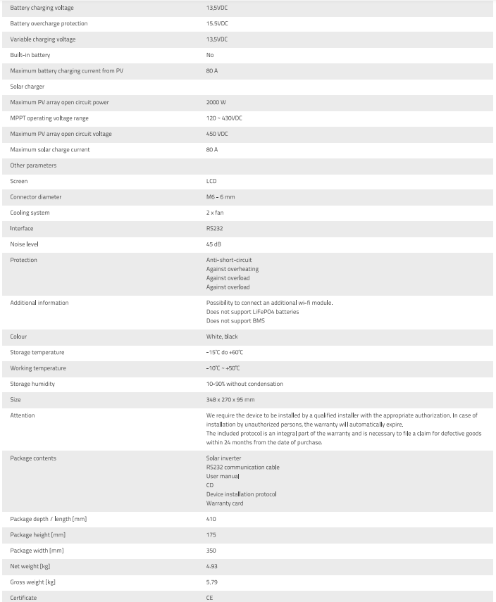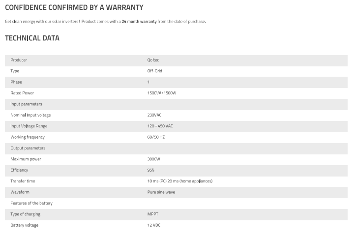 Qoltec 2KVA 1.5KW 80A MPPT Sinus
