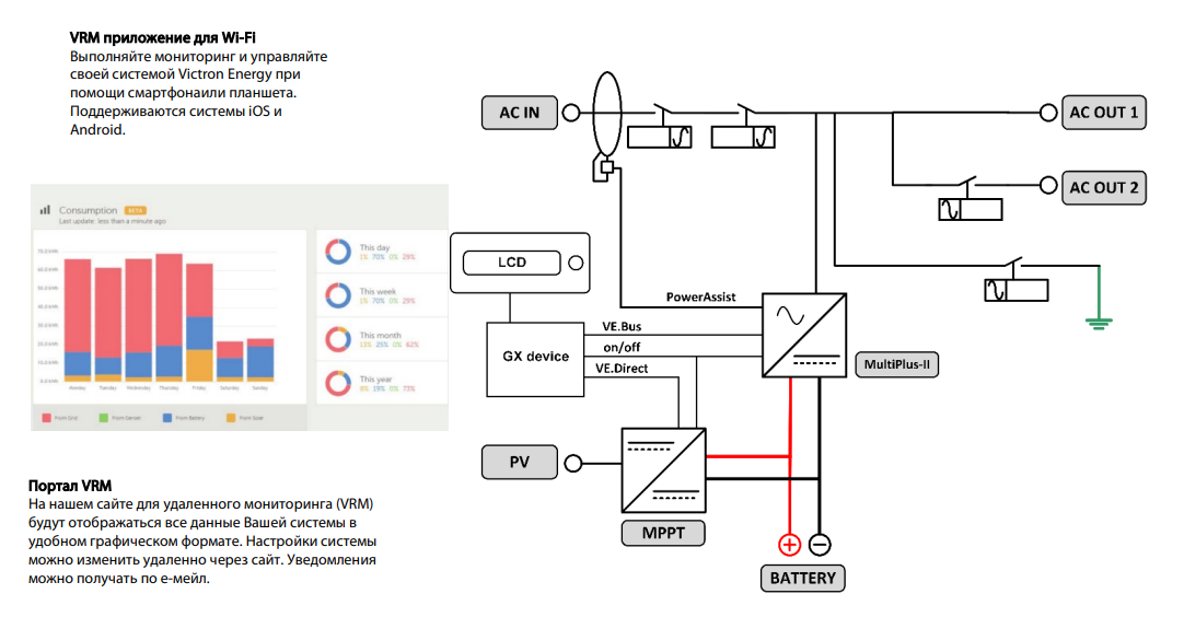 • Гібридний інвертор Victron Energy EasySolar-II 48/5000/70-50 MPPT 250/100 GX, фото 7