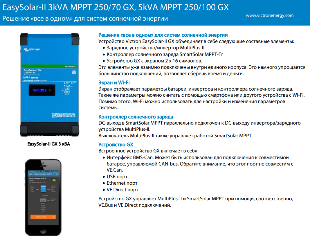• Гібридний інвертор Victron Energy EasySolar-II 48/5000/70-50 MPPT 250/100 GX, фото 2
