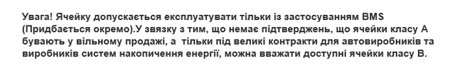 1. Осередок  3.2V 230Ah  (бренд  EVE,  хімсклад  LiFePO4)