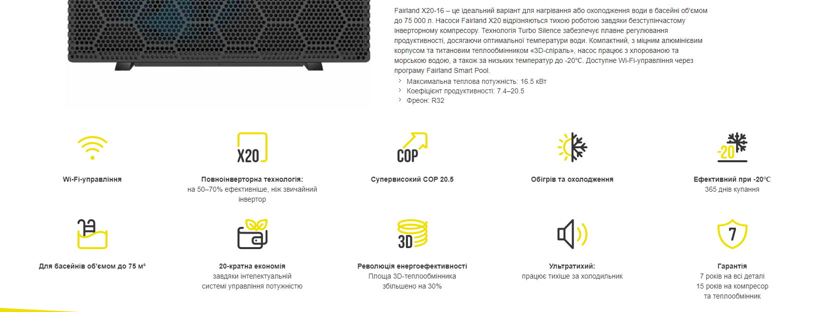 до 75 м³Інверторний тепловий насос Fairland X20-16 (16.5 кВт), фото 1