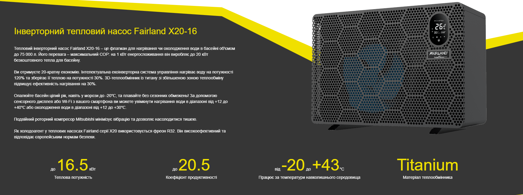 Інверторний тепловий насос Fairland X20-16 (16.5 кВт)
