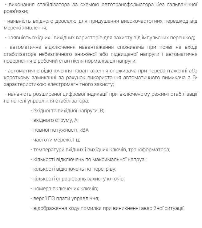 Тиристорний  дванадцятиступеневий  стабілізатор  для  трифазної  мережі зі  струмом  25  Ампер  на  кожну  фазу.  Виробляється  в  Україні  з  гарантією  на  три  роки,  точність  стабілізації  в  межах  3.5  відсотка.