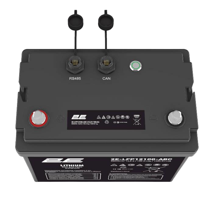 100-ампер-годинний акумулятор 12.8-вольтового стандарту від компанії 2Е має цілу низку унікальних переваг: 4 тисячі циклів за 90-процентних розрядів (1С), 2 порти з'єднання з інвертором, широка протокольна сумісність з інверторами (перелік виробників інверторів - внизу опису).