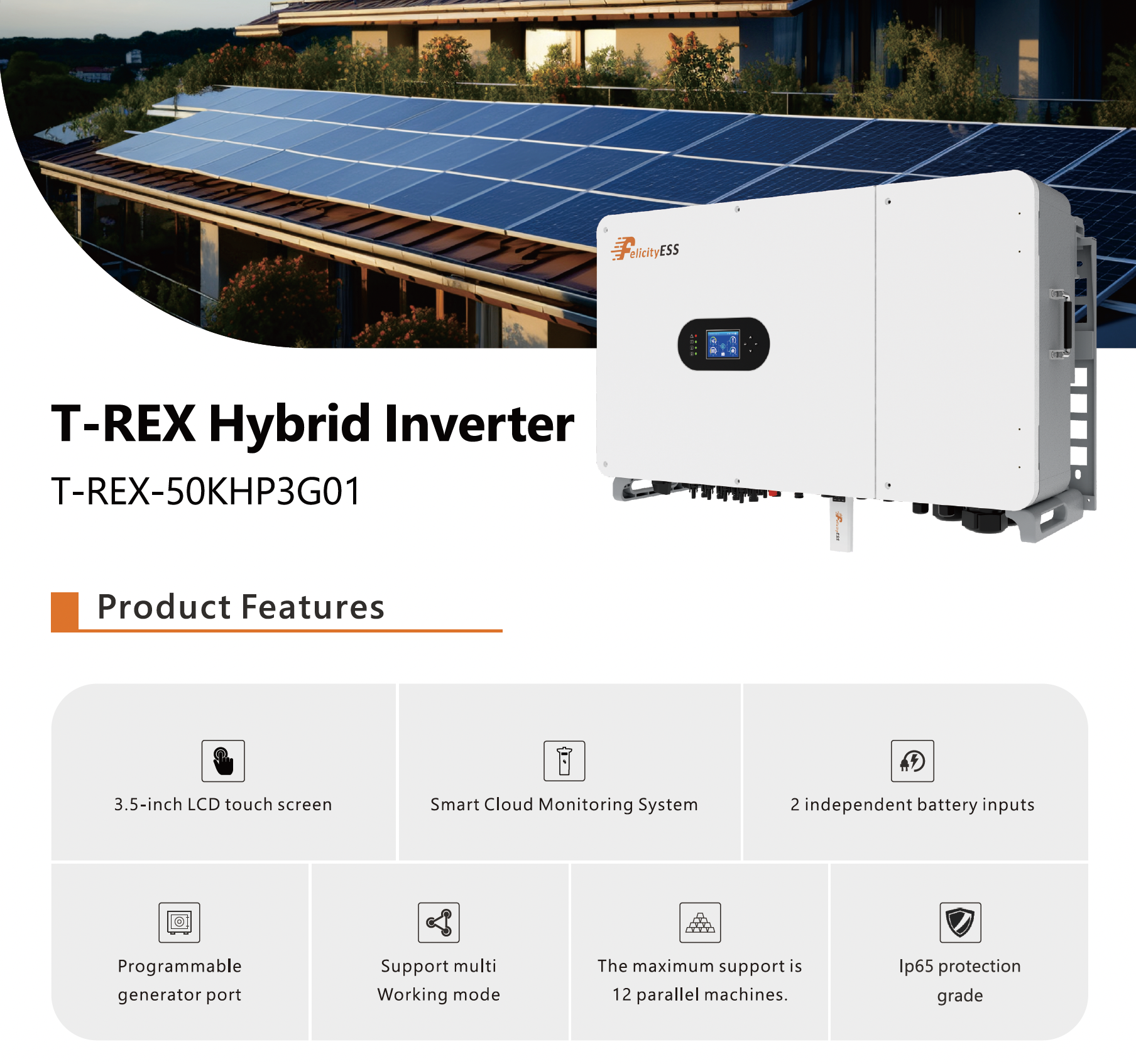 • Гібридний інвертор Felicity ESS T-REX-50KHP3G01, фото 4