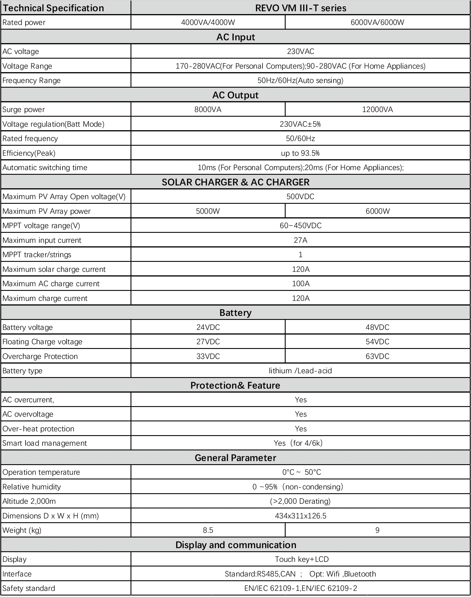 Детальніше про інвертор SunArk-бренду REVO-марки VM III-T-6KW-серії
