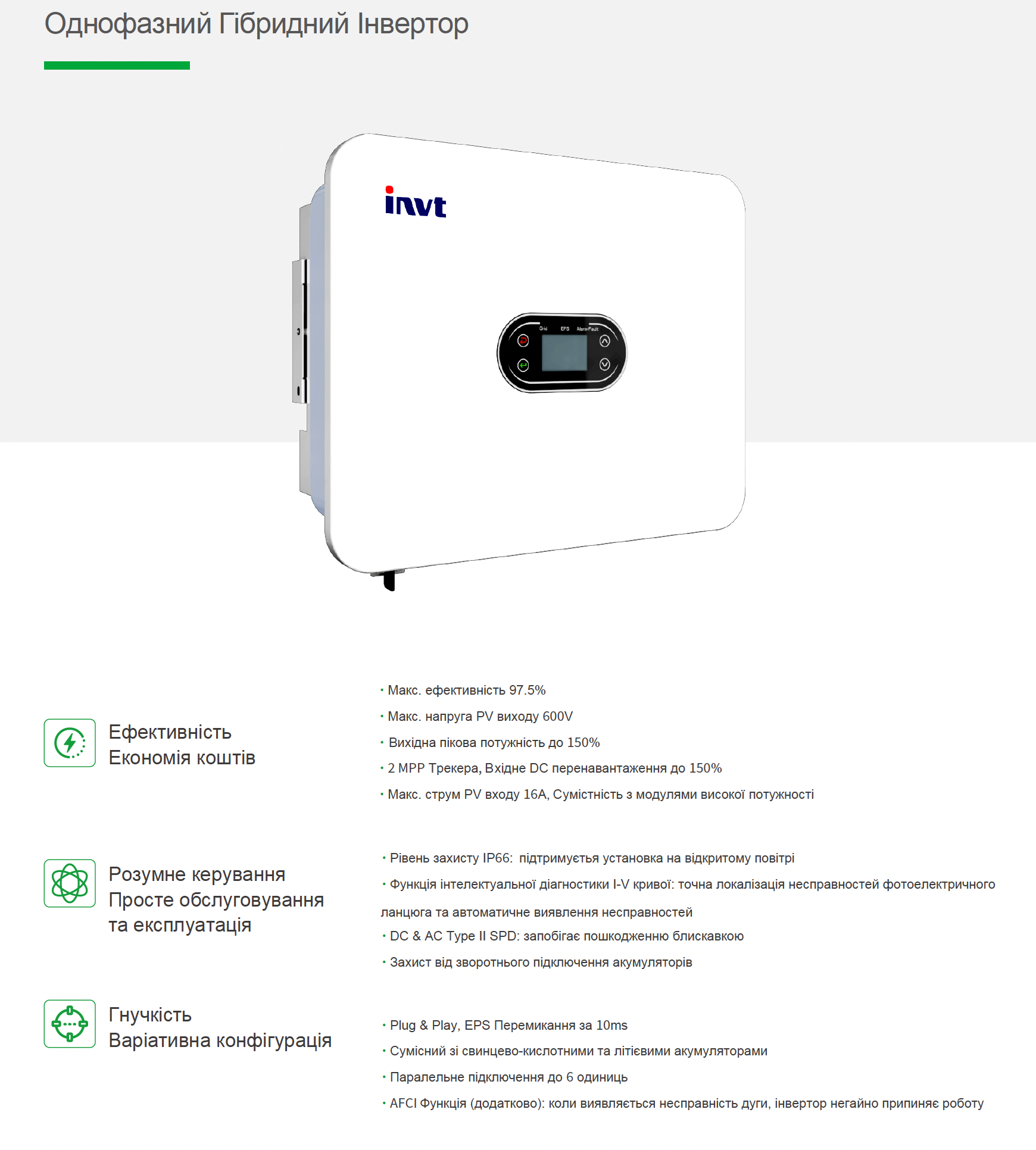 Більше інформації про гібридний інвертор 6 кВт з тихою роботою - дивіться в однойменному розділі нашого опису.