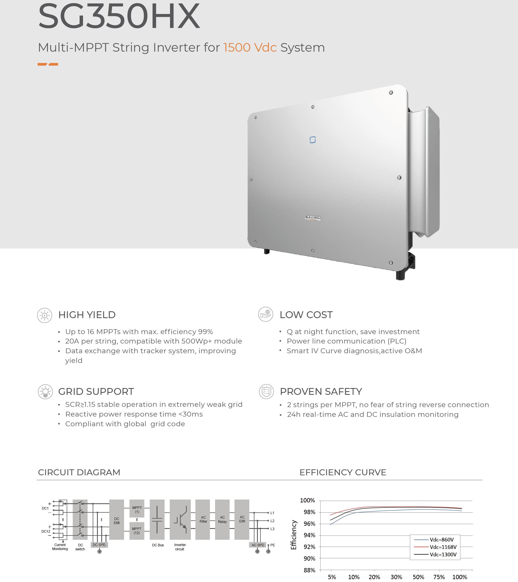 Реально моніториться по входу та виходу, стандартизований під вимоги глобальної енергосистеми. Більше інформації про інвертор SG версії 350HX - внизу опису.
