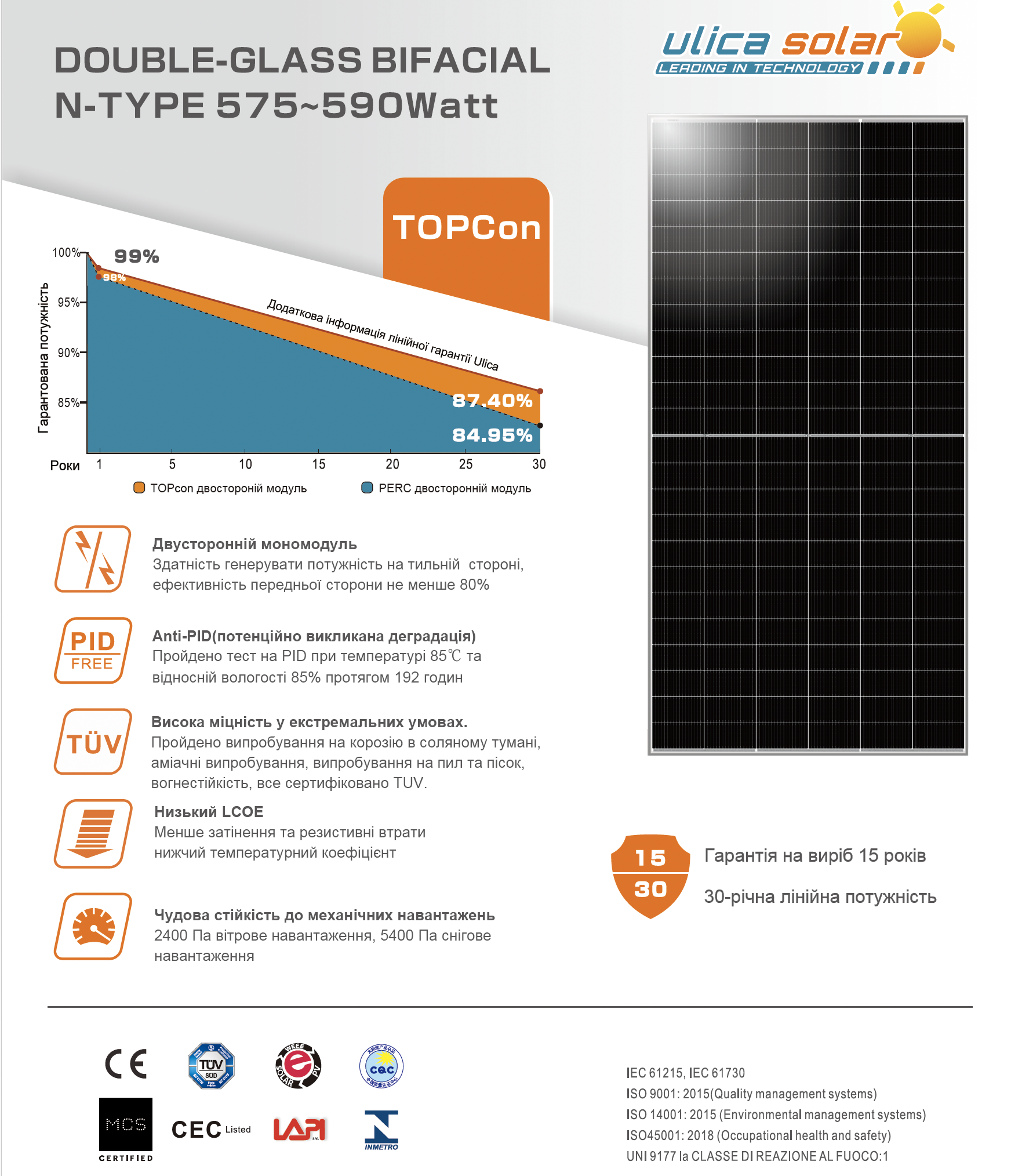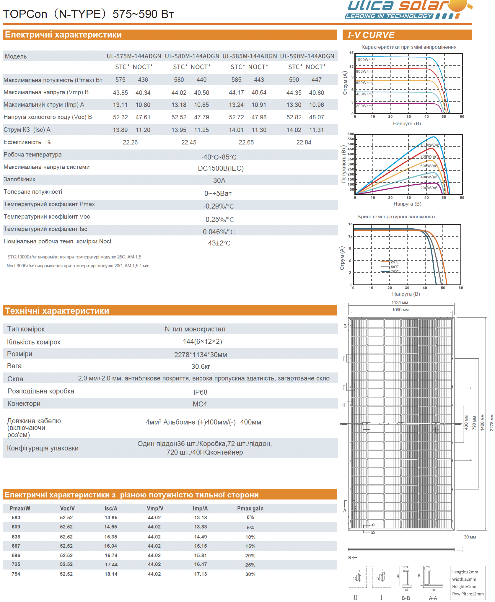 1. UL-580M  (модель  144ADGN,  тип  Bifacial)