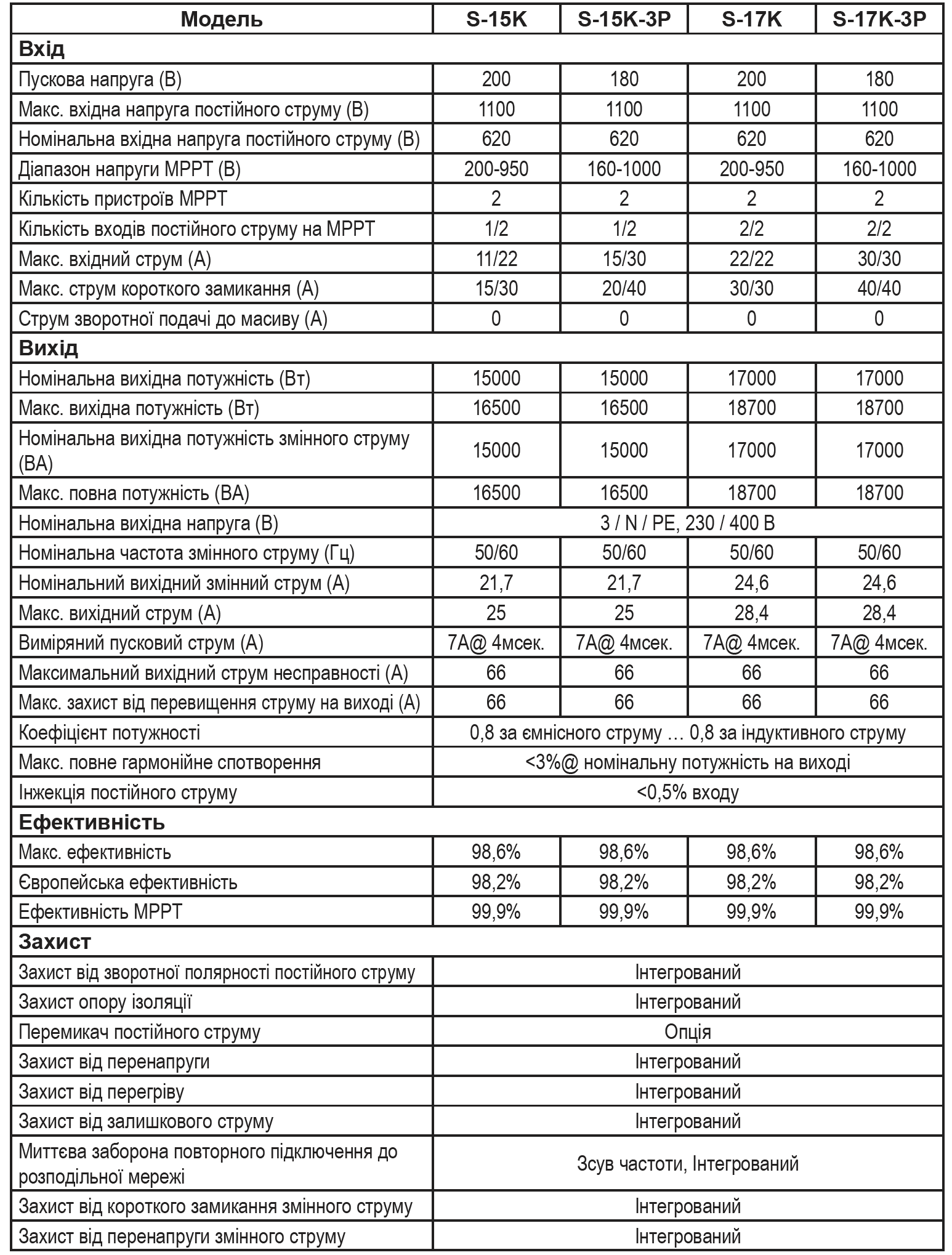 Трифазний  (3Р)  мережевий  15-кіловатний  (15  К)  інвертор  з  вбудованою  місією  обмеження  перетікання  енергії  з  автономної  станції  до  зовнішньої  мережі.  Також  є  віддалений  моніторинг  та  варіанти  частот  (50/60).