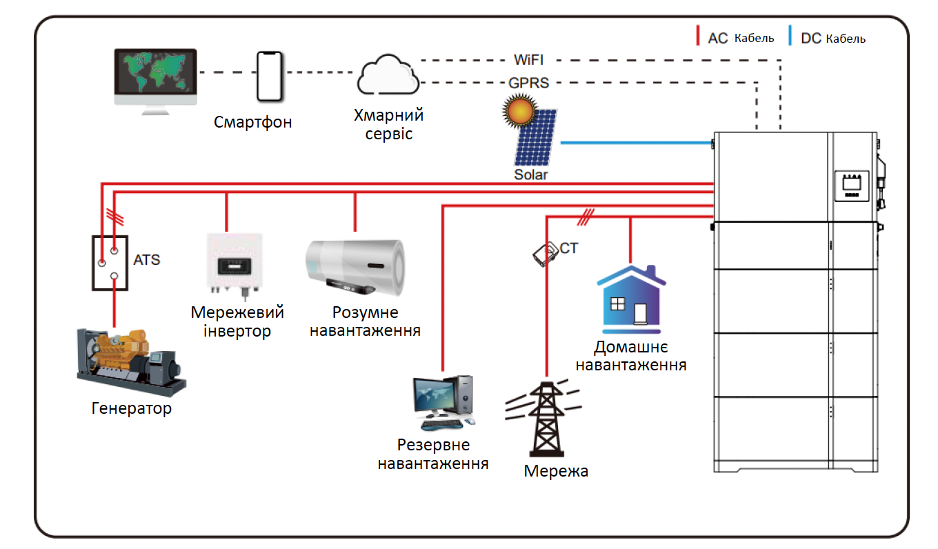Підходить для середнього будинку з однофазною електричною мережею, сумісний з генератором та сонячно-панельным масивом до 7.8 кіловат.