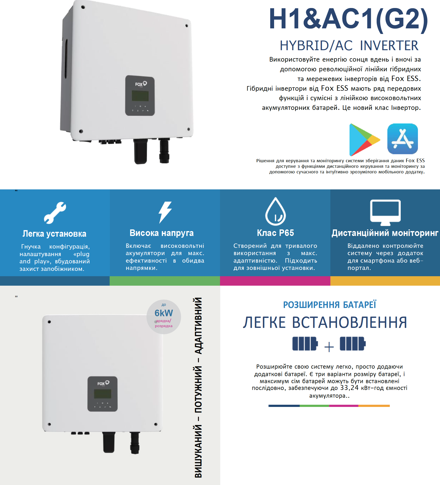 Опис інвертора H1-6.0-E-G2 від виробника Fox ESS: