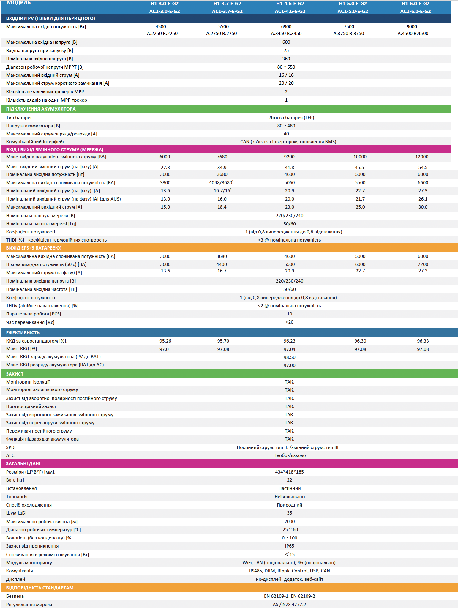 - H1-6.0-E-G2 (виробництво Fox ESS, 6 кВт, 1 фаза)