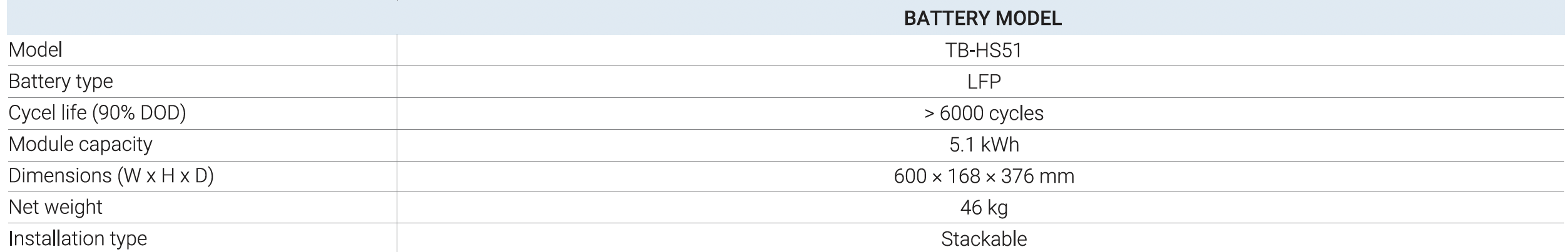 • Номін. ємність: 5.1 кВт·г на модуль.