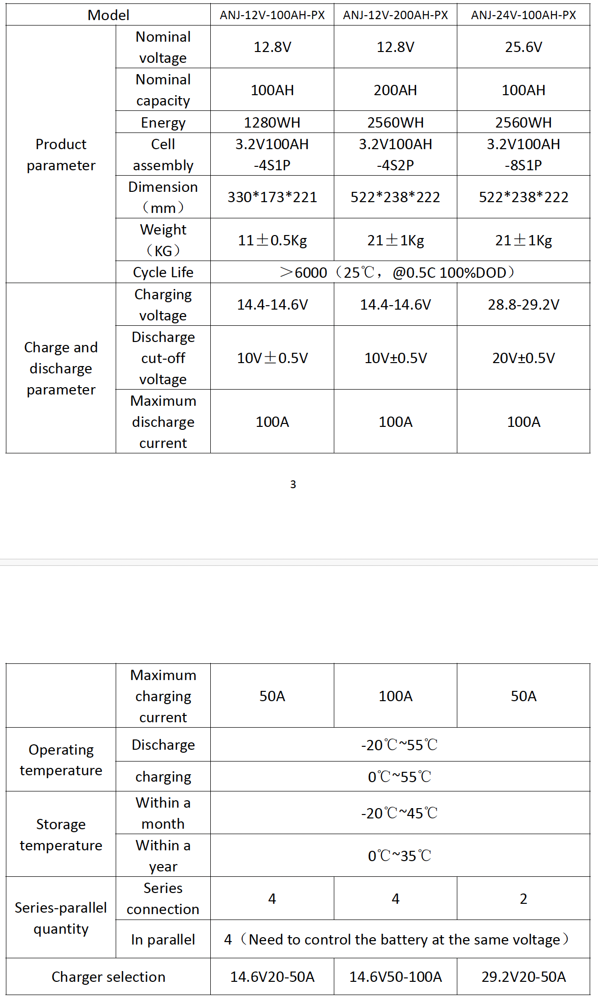 Детальніше про акумулятор Anenji: модель ANJ, версія 24V-100AH, індекс PX