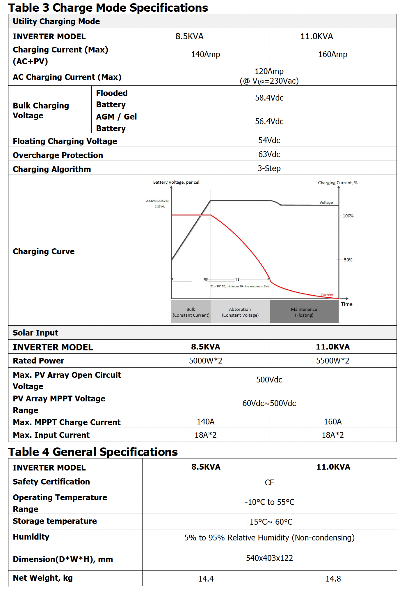• MPPT контролер: діапазон від 60 до 500 В DC, макс. струм заряду – 160 А.