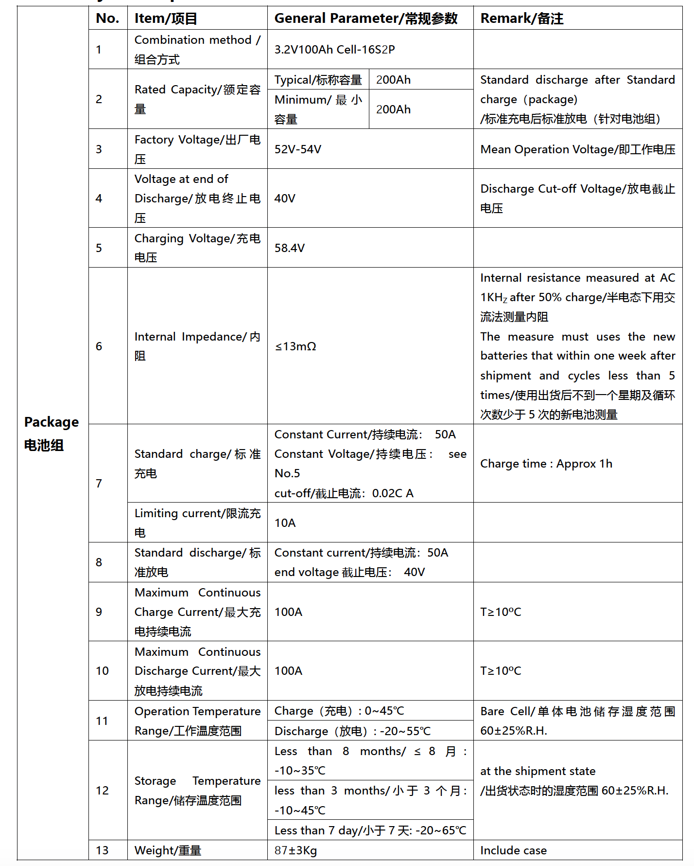 - Номінальна ємність, типова: 200 А·год (стандартний розряд після стандартної зарядки)
