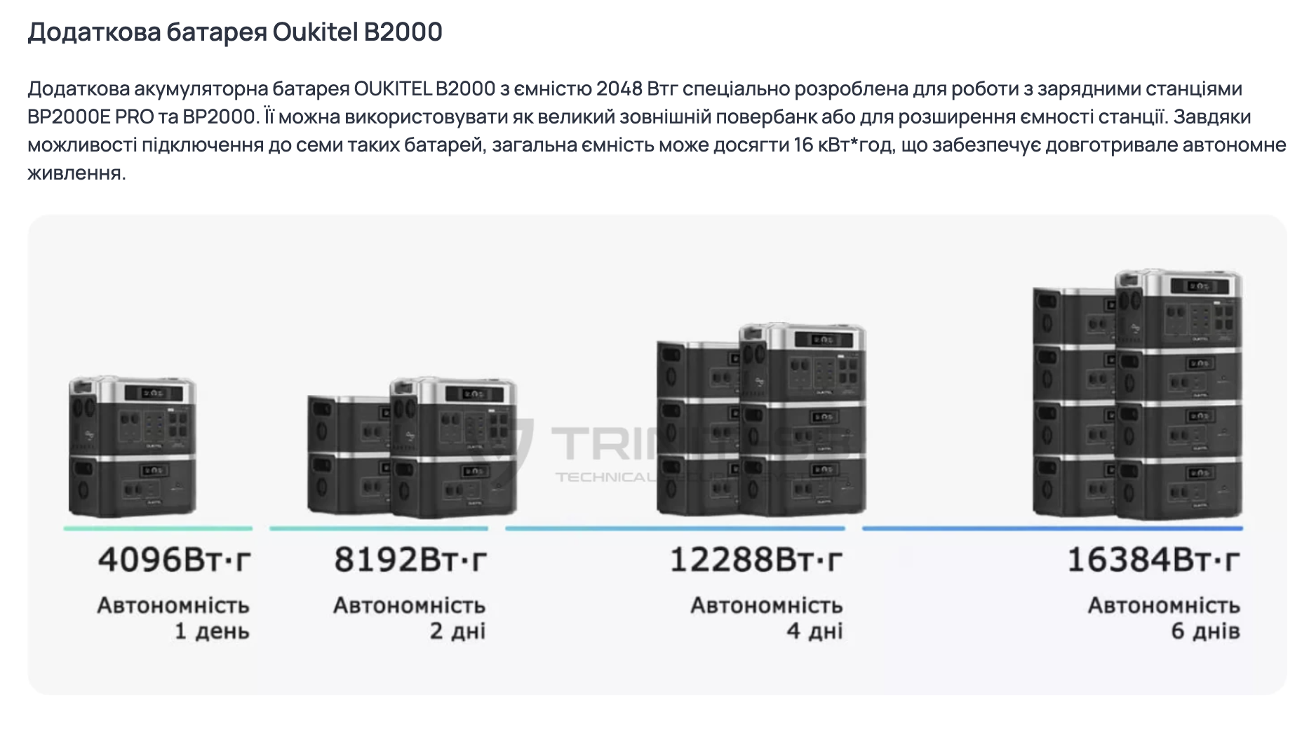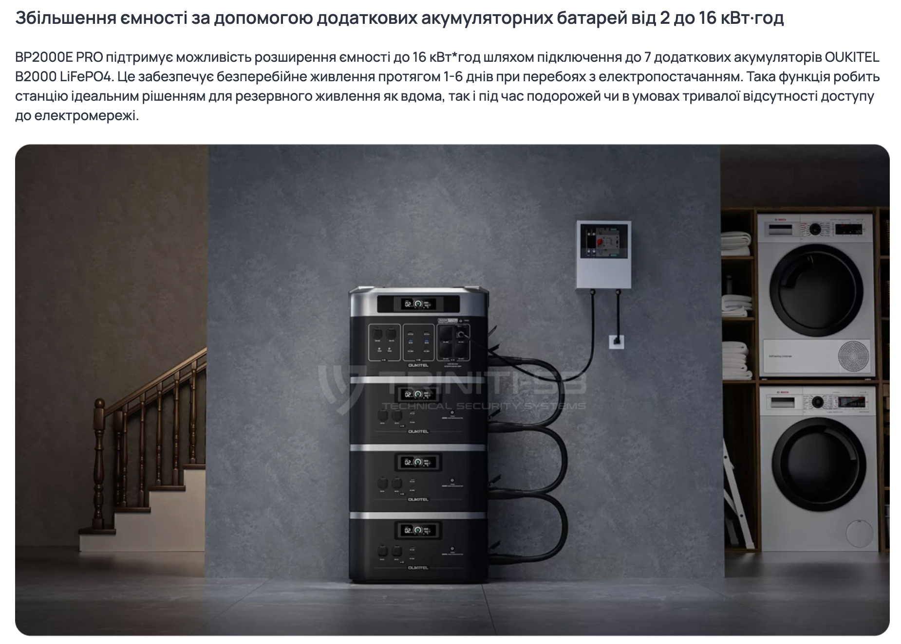 • Розширення: до 7 додаткових батарей B2000 для збільшення ємності.