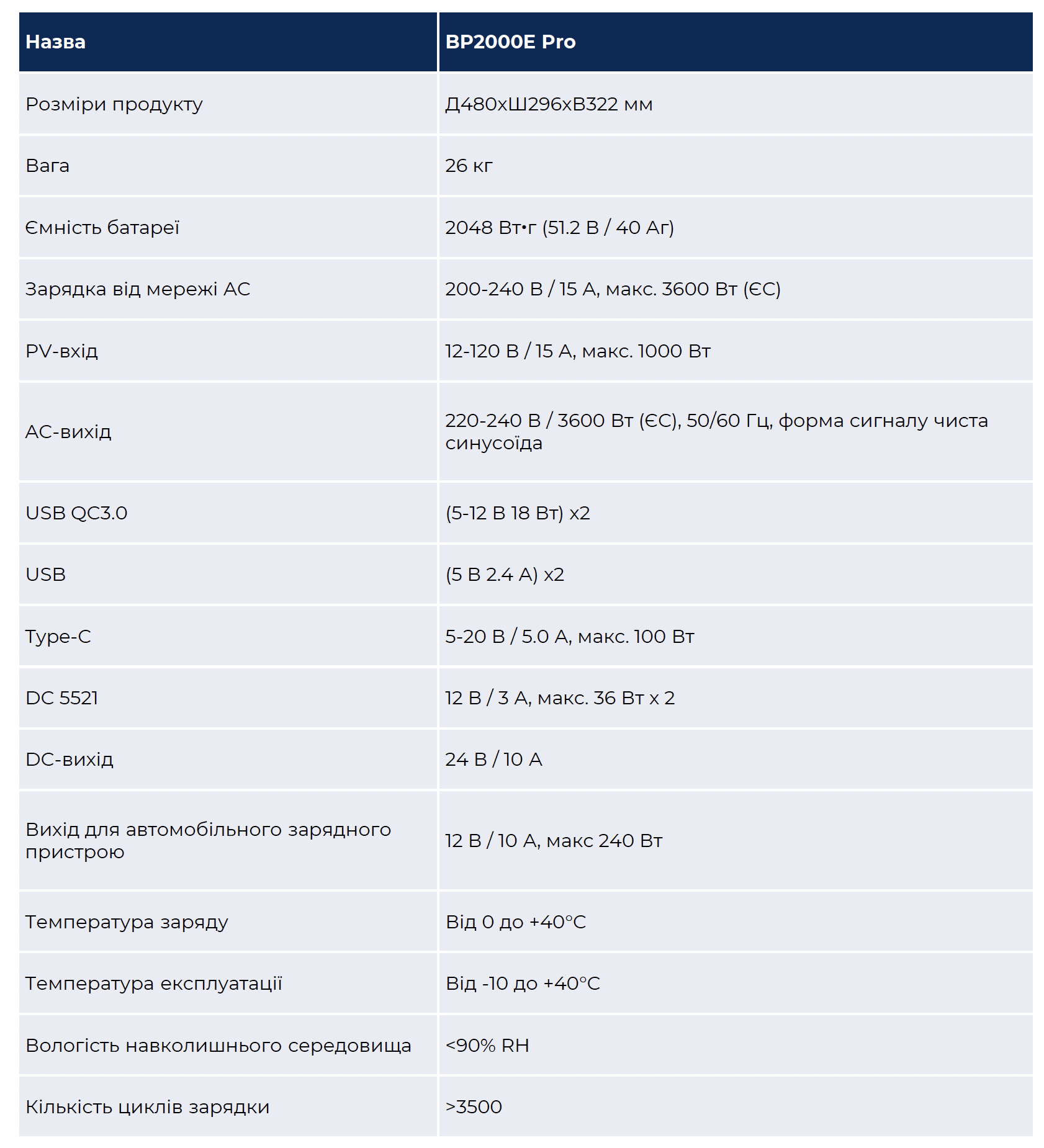 Портативна зарядна станція OUKITEL BP2000E PRO (2048 Вт · год / 3600 Вт)