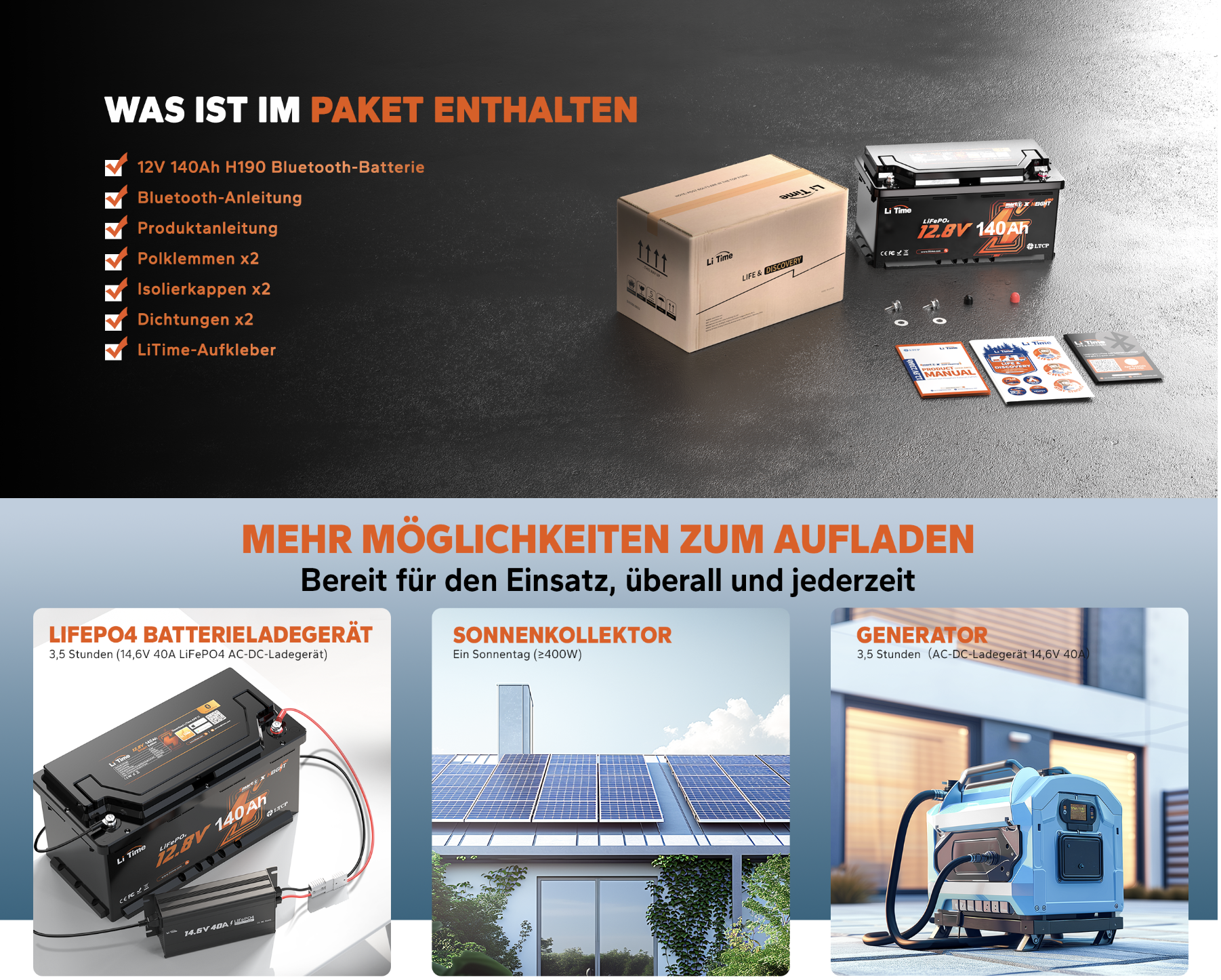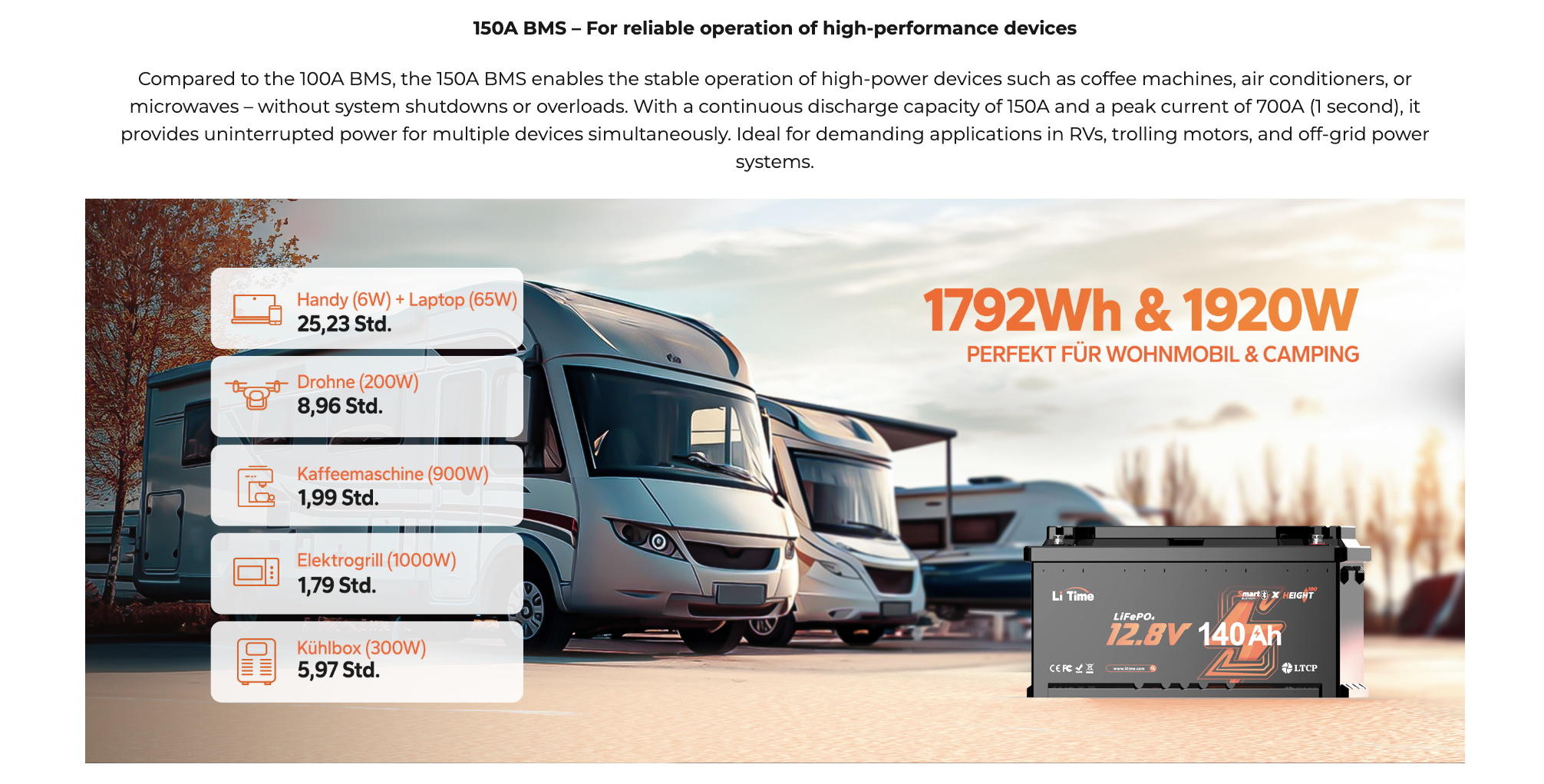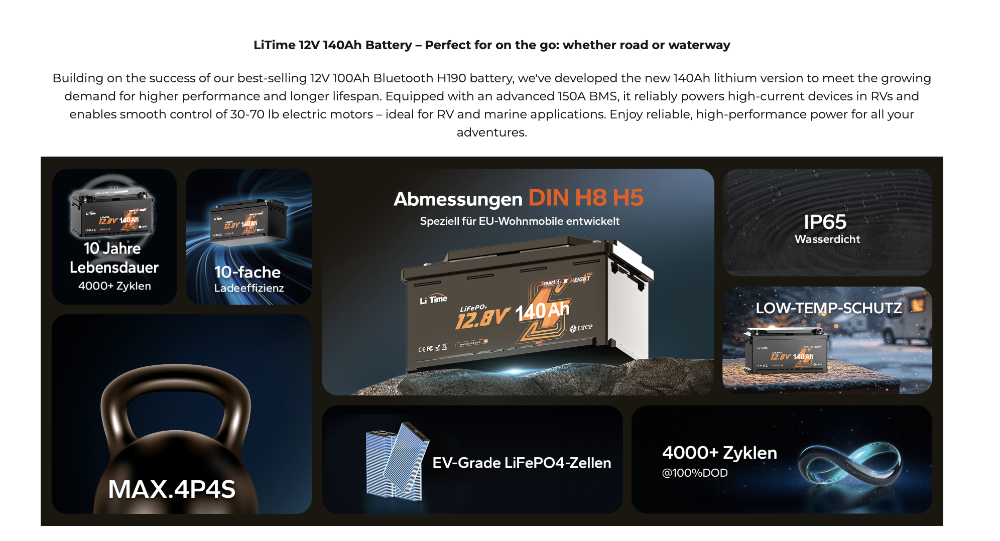 Детальніше про акб LiTime: серія Smart Bluetooth, модель 12.8V 140Ah (H190)