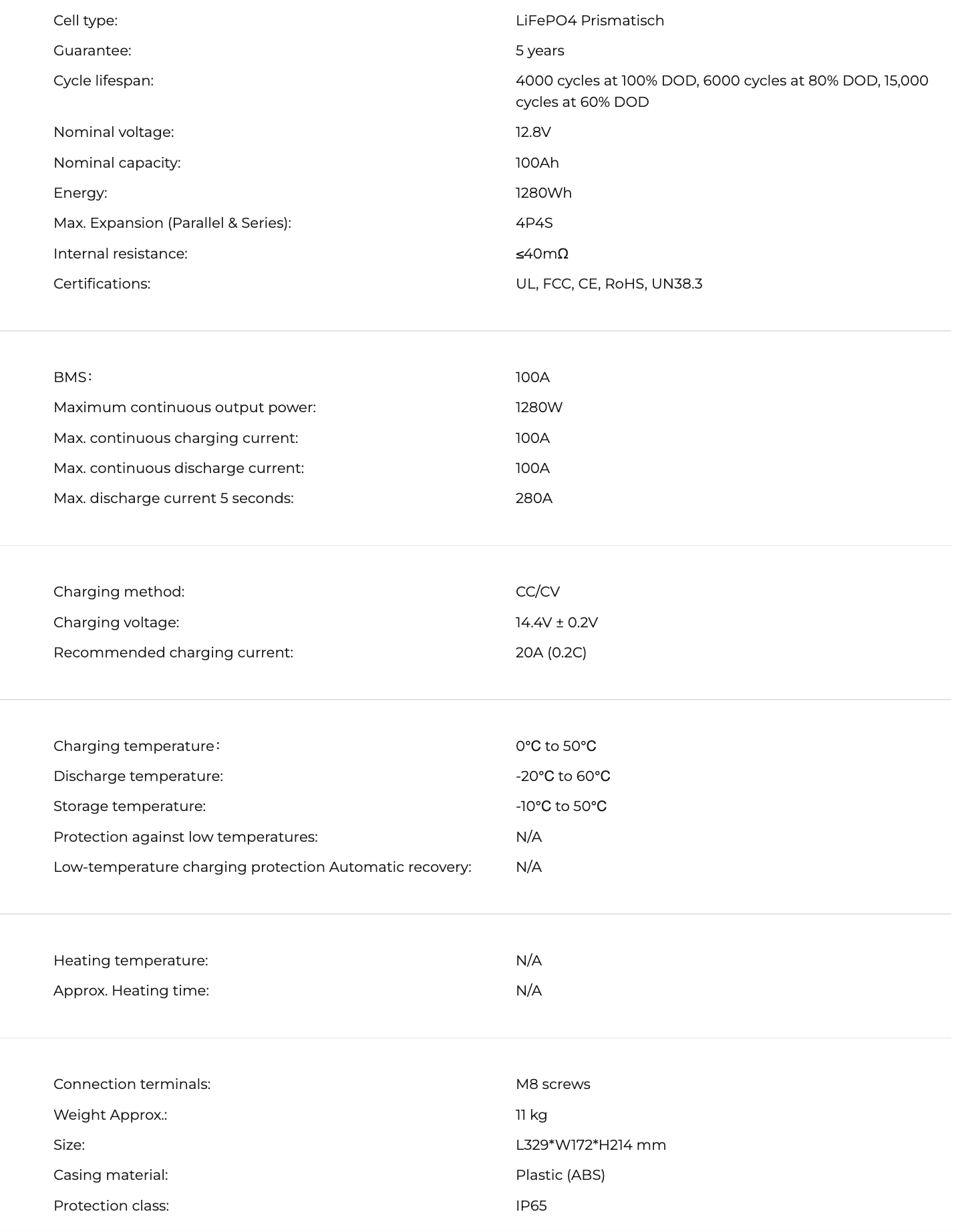 • Макс. безперервний струм заряду: 100 А для швидкого поповнення енергії.