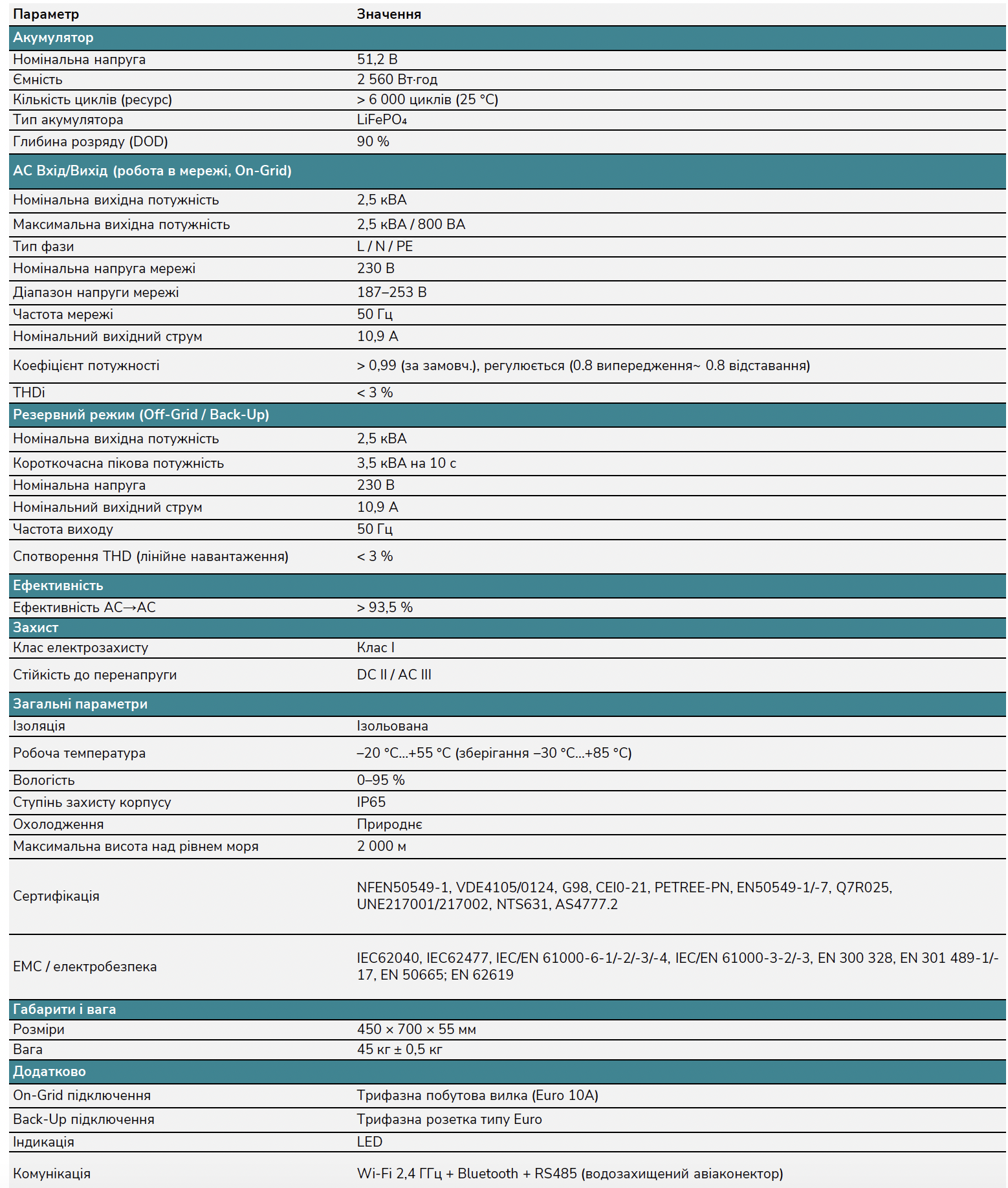 • Тип акумулятора: LFP, відомий стабільністю та безпекою.