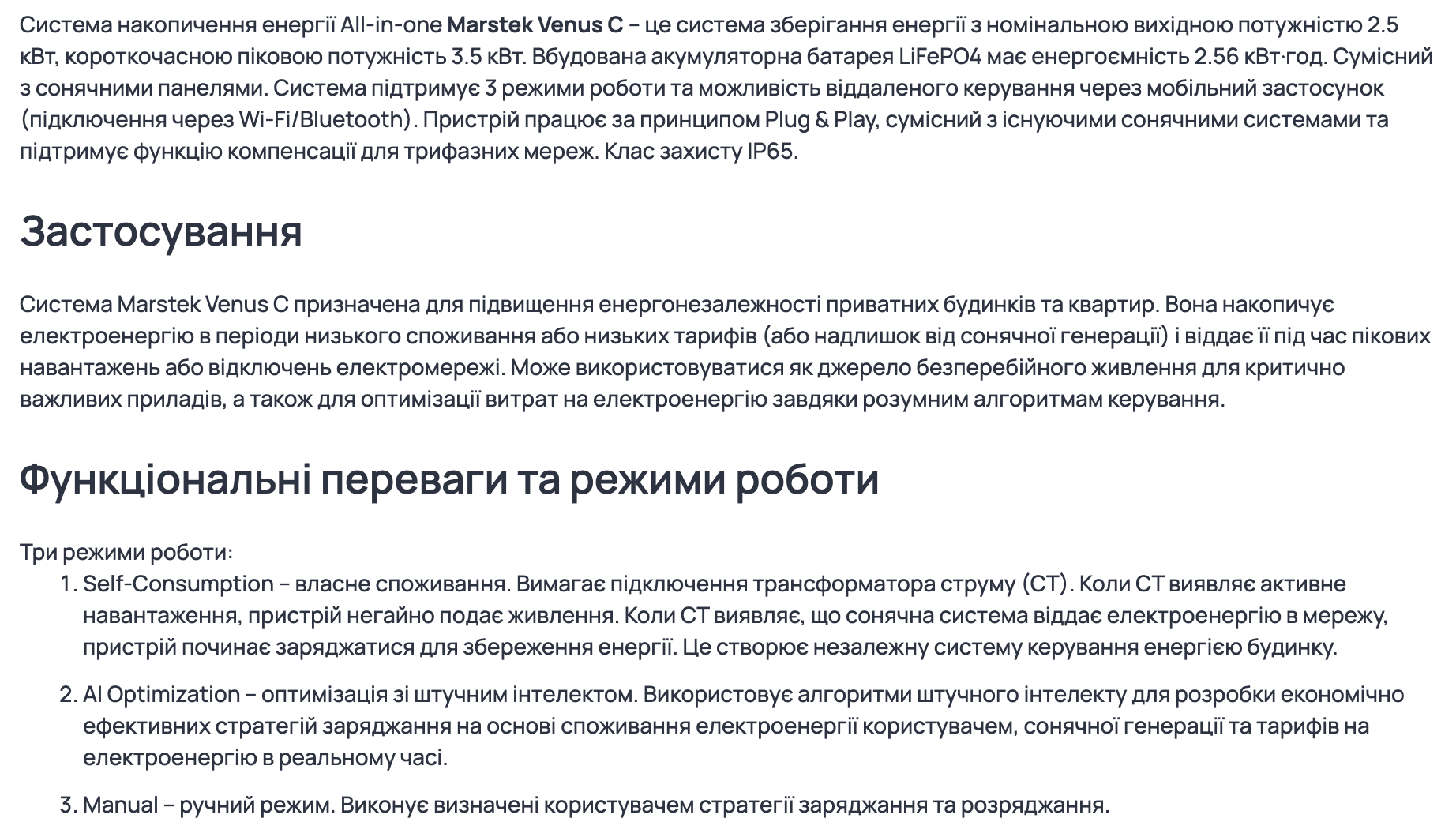 1. Система акумулювання енергії універсальна - бренд Marstek, серія Venus C, модель MST-BIE2.5-2500 з ємністю 2,5 кВт·год.