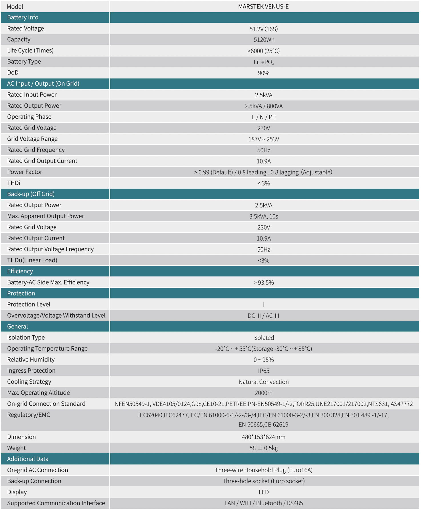 Детальніше про енергосистему Marstek: серія Venus E 3.0, модель MST-BIE5-2500