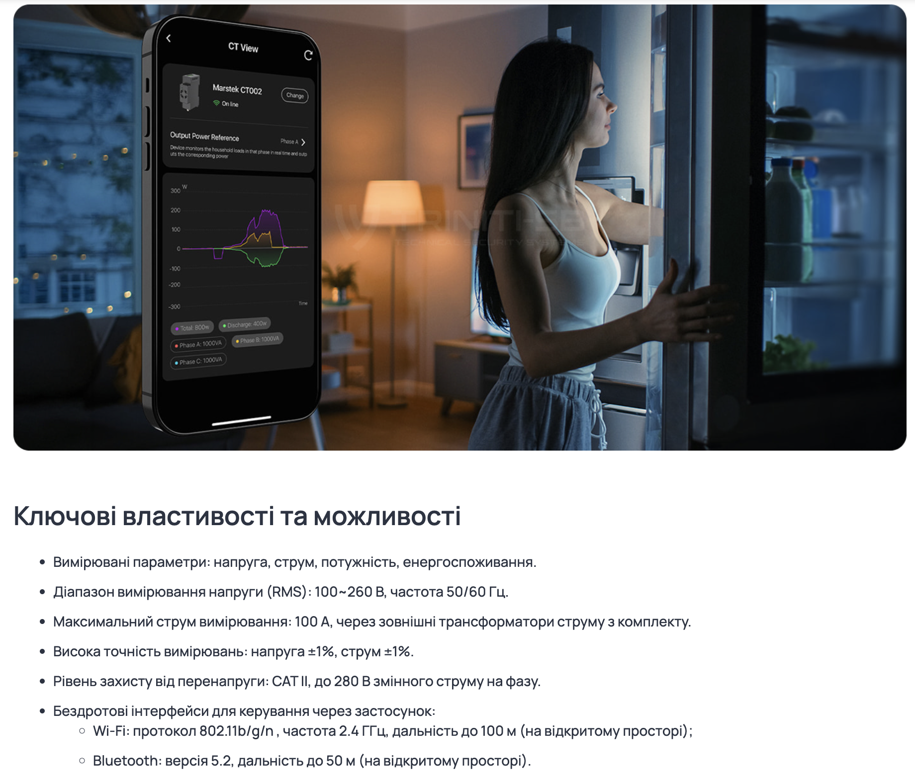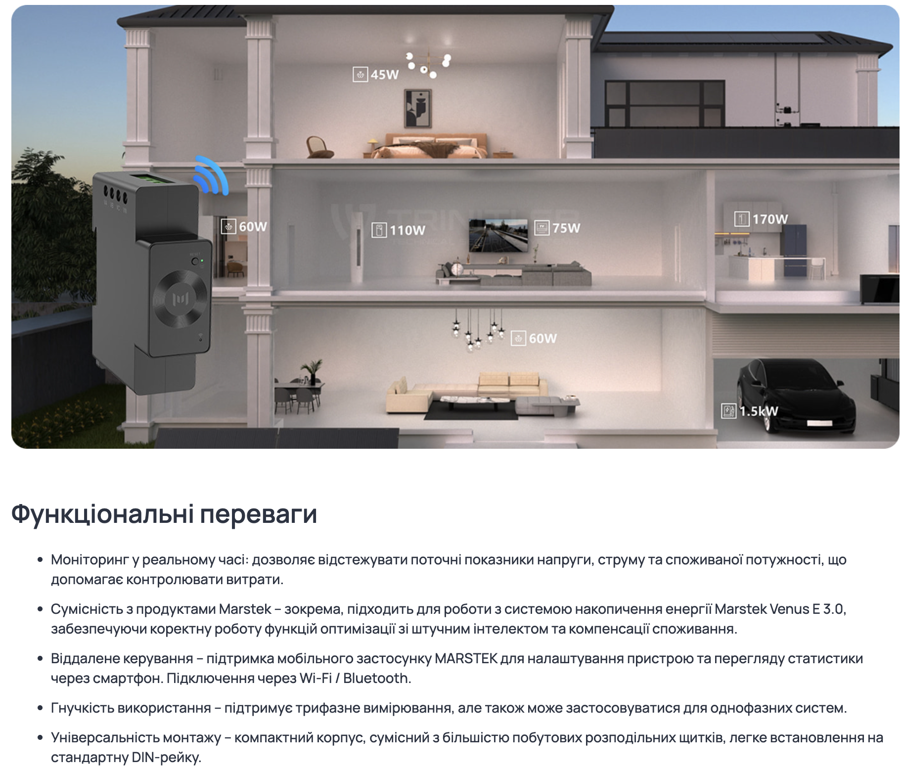 - Потужність пристрою: менше 2 Вт, мінімізуючи власні витрати на електрику.