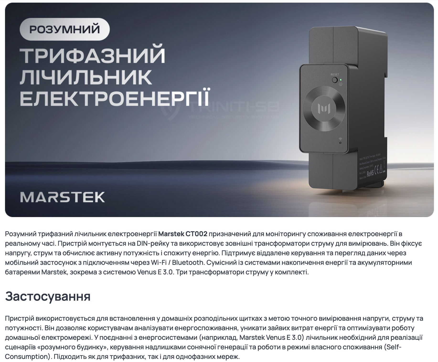 Детальніше про лічильник Marstek: модель CT002