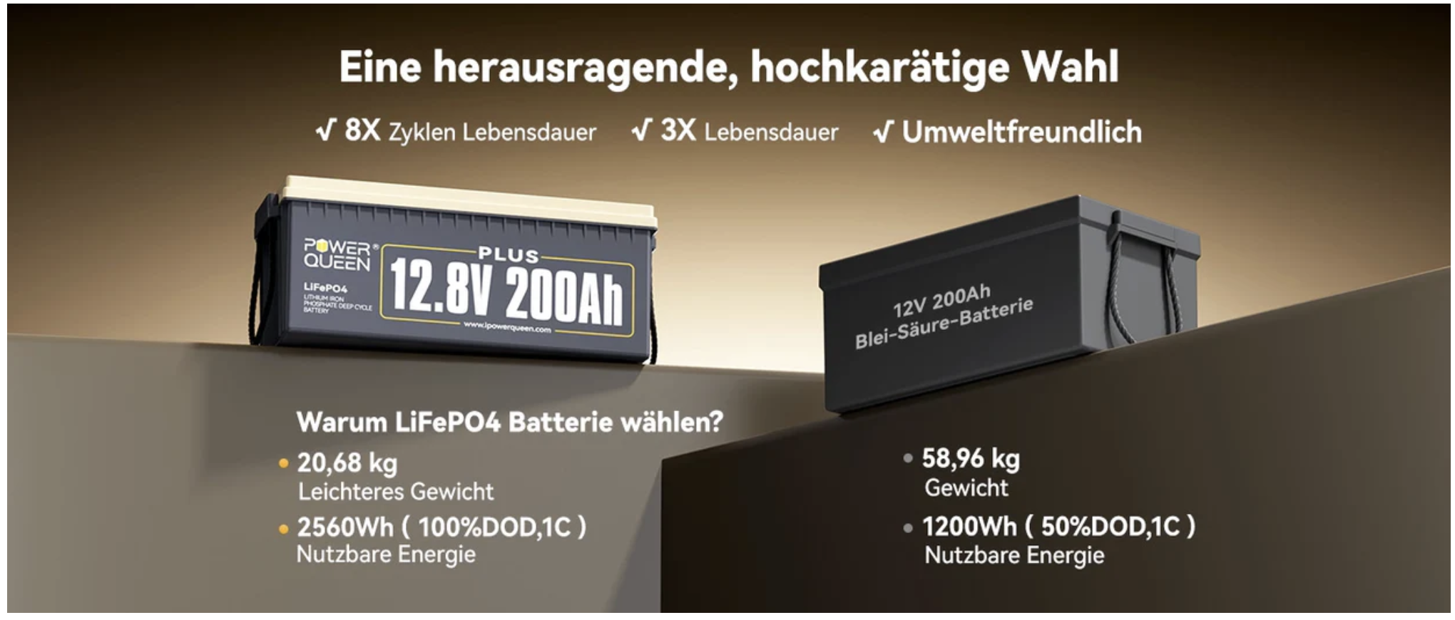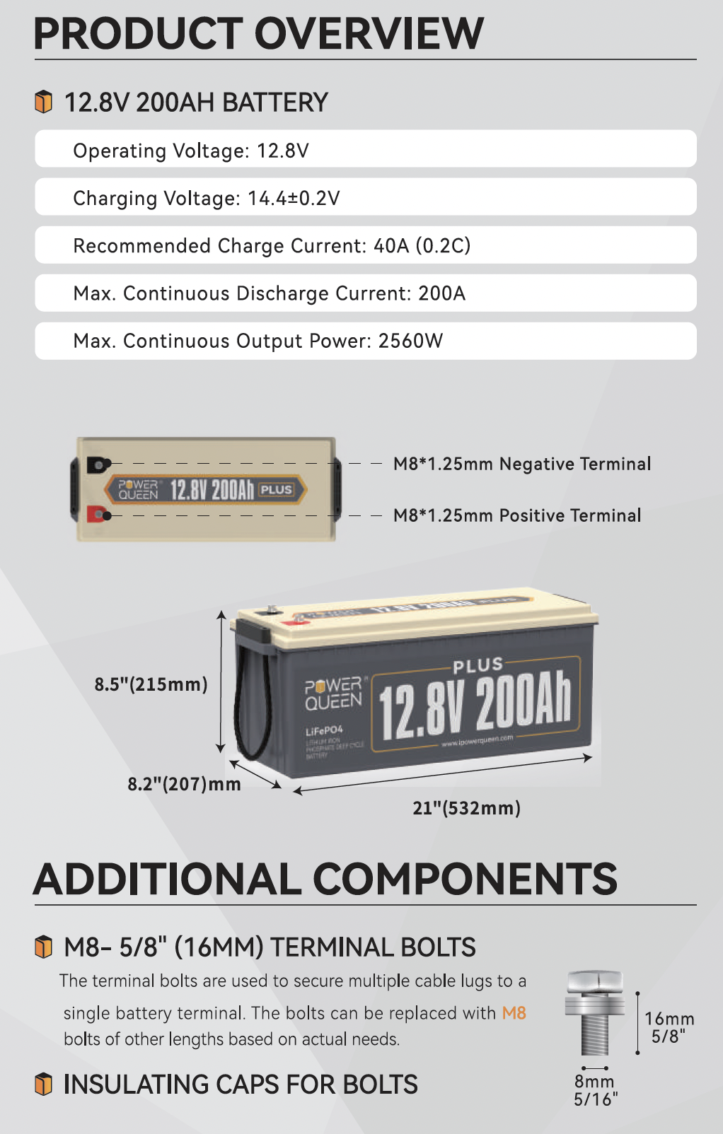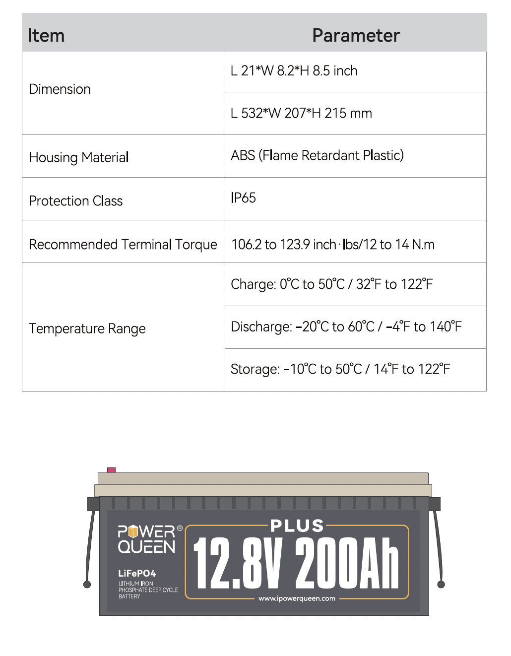 Детальніше про акумулятор Power Queen: серія 12V, модель 200Ah