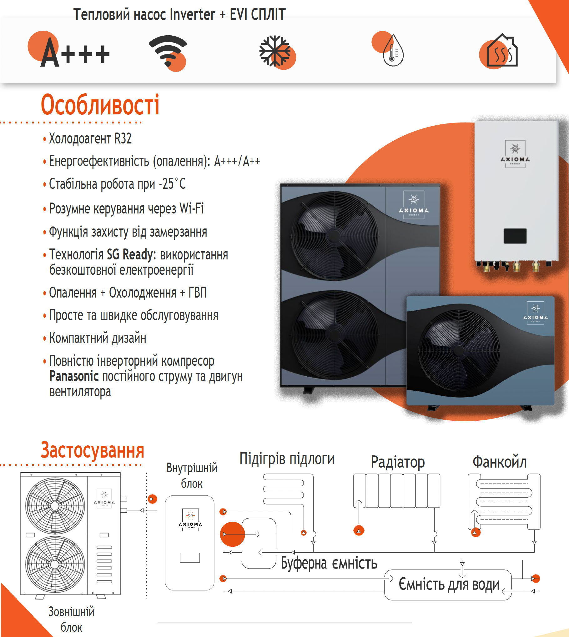 Детальніше про AXIOMA energy: серія AXHP-EVIDC, модель 14S-3+EVI, версія split (OU+IU)