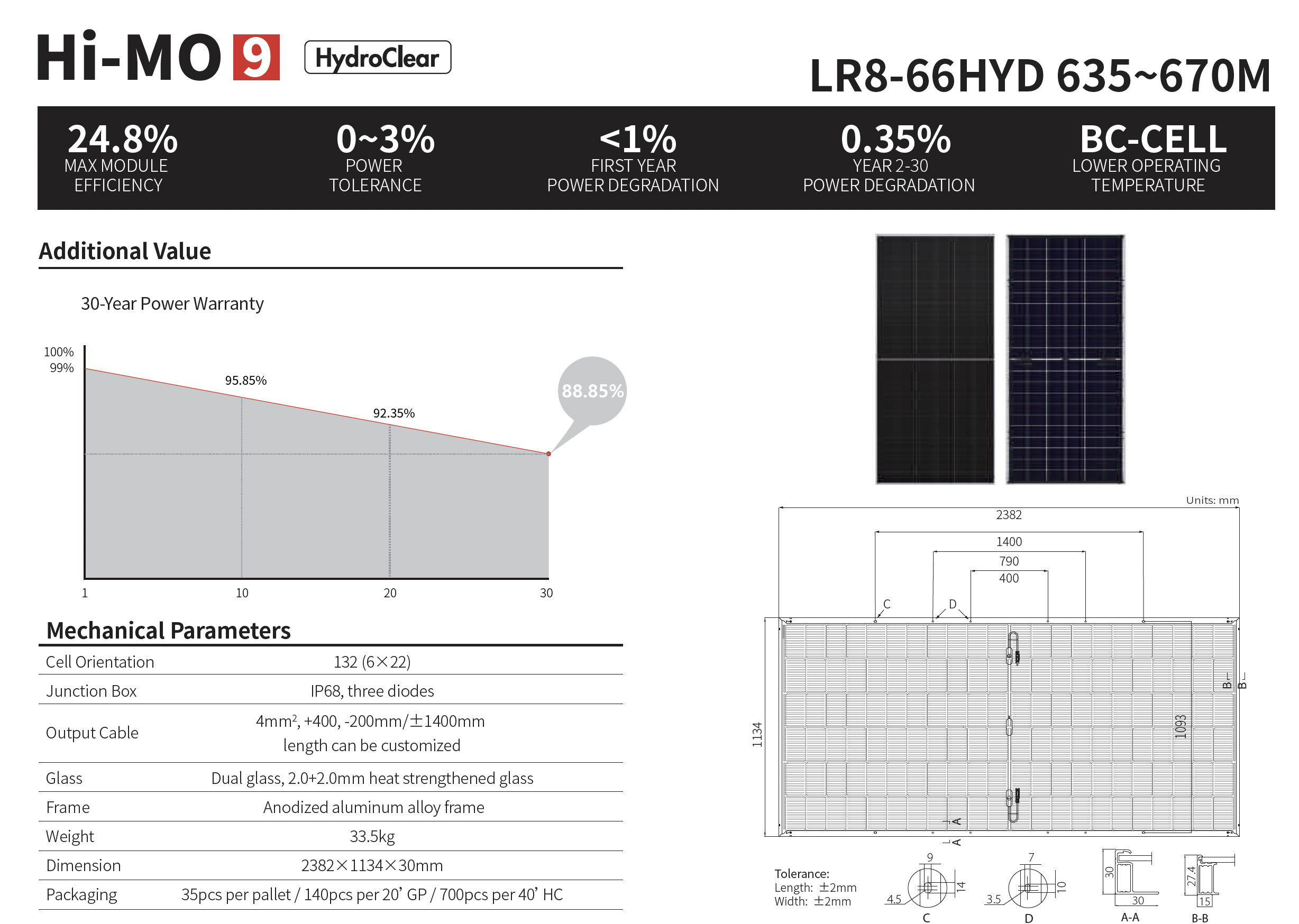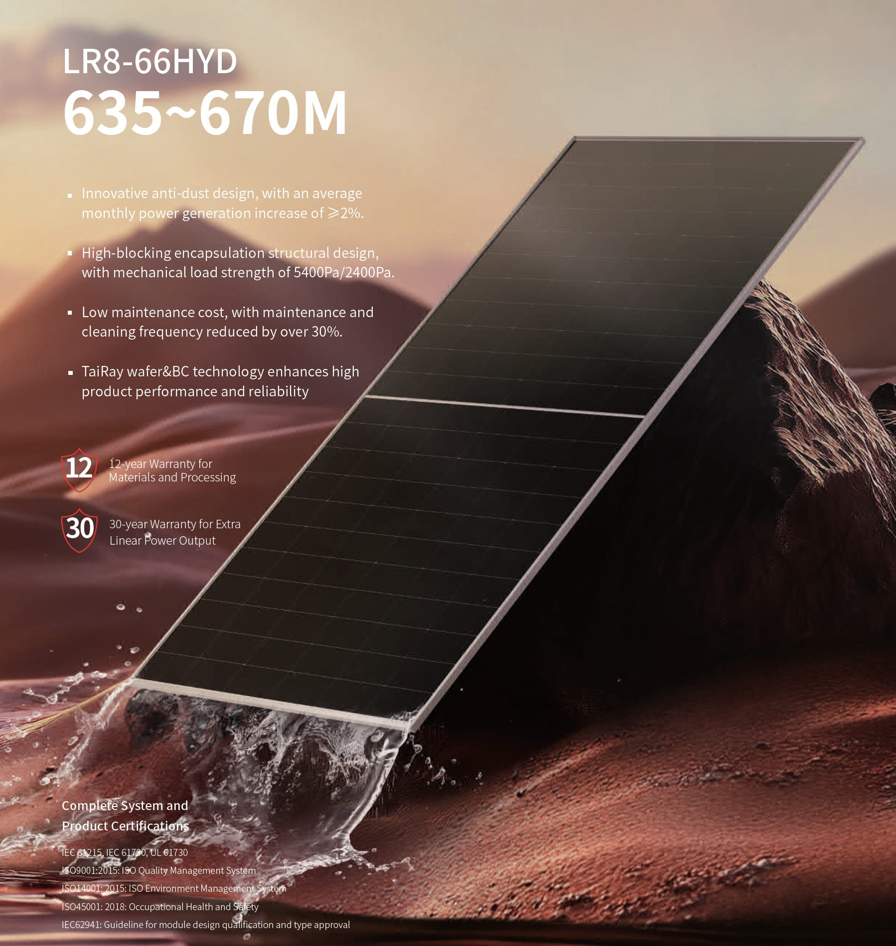 Детальніше про батарею LONGI: серія LR8-66HYD, модель 650M, версія HydroClear
