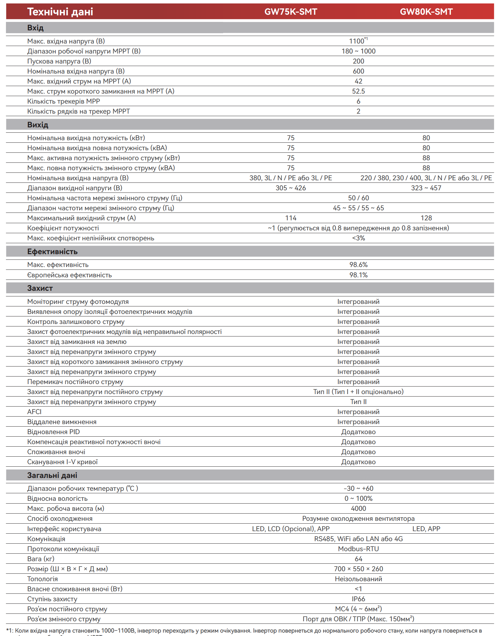 - Мережевий перетворювач енергії марки GoodWe - серія SMT, модель GW80K